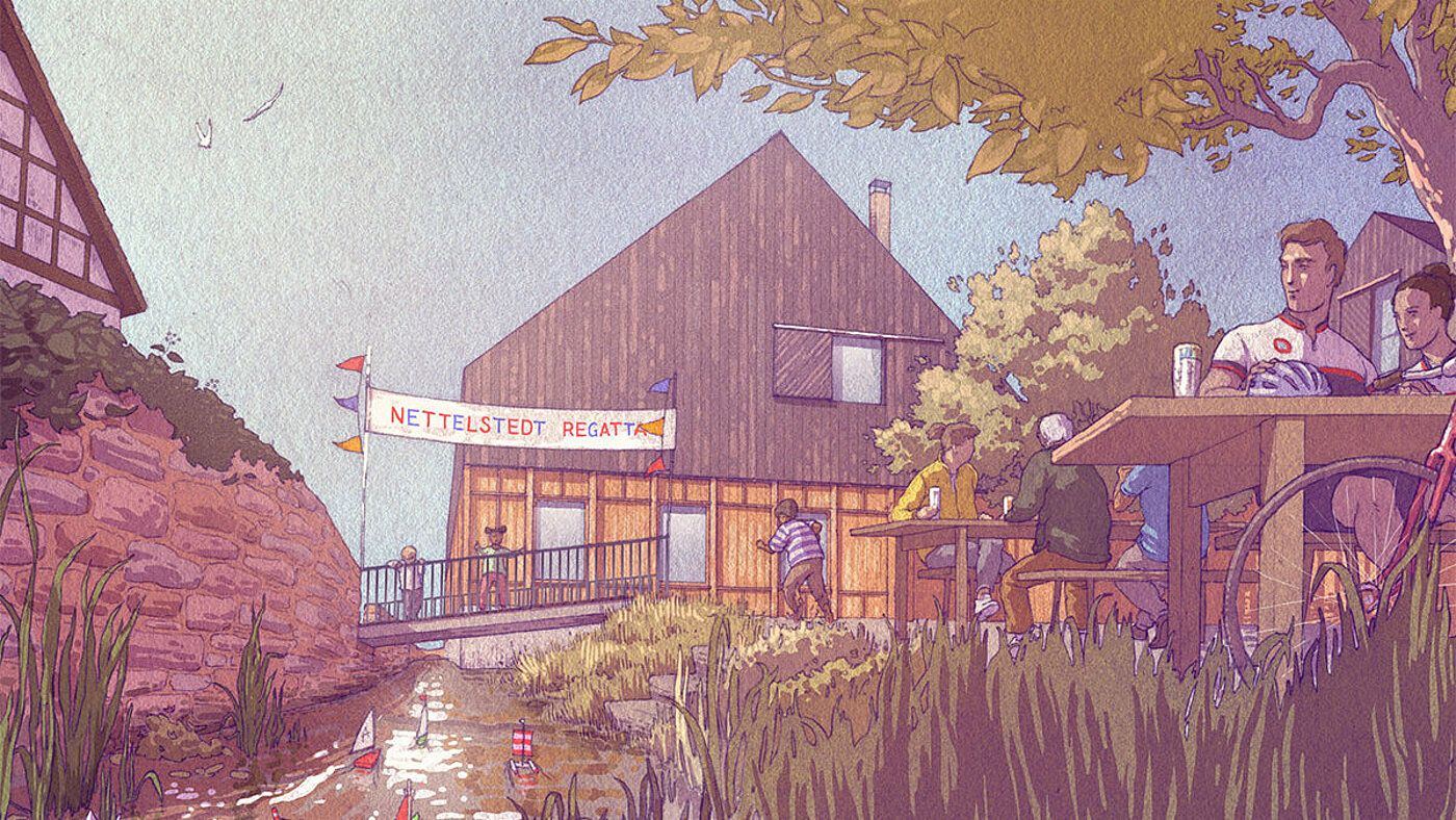 Es wurde ein Modellvorhaben für ein modernes und vielfältiges Wohnangebot mit mehr als 30 Wohneinheiten für unterschiedliche Bedarfe und Zielgruppen konzipiert. Dazu zählen genossenschaftliche Mietwohnungen, Eigentumswohnungen und Reihenhäuser. Diese gruppieren sich um gemeinschaftlich genutzte Räume und einen Garten im Hof sowie ein Dorfcafé mit Biergarten, das als Treffpunkt allen Bewohnerinnen und Bewohnern von Nettelstedt offensteht. Ein integriertes Pflegekonzept unterstützt die Selbständigkeit der älteren Bewohnerinnen und Bewohner in allen Lebensphasen. Menschen mit Hilfebedarfen werden in einer Pflegewohngruppe und durch eine kleine ambulante Pflegestation der Diakonie versorgt. Die Wohn- und Versorgungsangebote insbesondere für ältere Menschen machen den Umzug aus dem oft zu groß gewordenem Einfamilienhaus machbar. Die freiwerdenden Immobilien ermöglichen im Gegenzug Haushalten mit größerem Platzbedarf das Nachrücken. Damit sinkt der Bedarf an Neubauten am Ortsrand und weniger Flächen werden versiegelt.