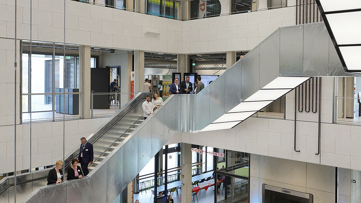 Das Gebäude für den SPIN wurde für die gemeinsame Arbeit konzipiert: Werkstätten, FabLabs sowie Maker- und Coworking-Spaces bestehen für konkrete Ideenumsetzung bis hin zur Gründungsförderung; im Bereich der beruflichen Bildung sind neue Lernorte wie eine digitale Werkstatt Handwerk installiert und bildungssystemübergreifenden Lernens ermöglicht. Digitales Lernen und die Vernetzung der Hochschulinfrastruktur mit Berufskollegs im benachbarten Kreis Höxter verbinden den ländlichen Raum mit dem Campus. So wirbt der Hochschulstandort in die kleine Mittelstadt Lemgo: als Innovationstreiber für die Unternehmen im ländlich geprägten Raum. Und trägt dazu bei, junge Menschen als Fachkräfte in der Region zu halten.