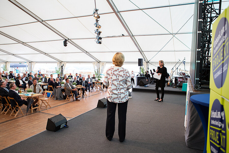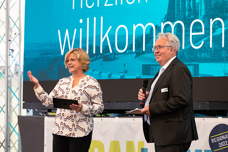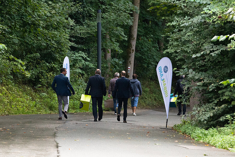 Projekte der REGIONALE 2022 verwirklichen Ideen und Modelle für die Zukunftsfähigkeit der Region. Sie bringen Lösungen für ein gutes Leben in OWL – jetzt und in Zukunft. Diese Botschaft stand im Mittelpunkt der UrbanLand Partie am 27. August 2021 auf dem Plateau des Kaiser-Wilhelm-Denkmals in Porta Westfalica. Rund 250 Gäste aus Politik, Wirtschaft und Wissenschaft, von Initiativen und Vereinen verfolgten das Open-Air-Programm mit Redebeiträgen von NRW-Heimatministerin Ina Scharrenbach, Regierungspräsidentin Judith Pirscher und Landrat Jürgen Müller, Vorsitzender des UrbanLand Board.