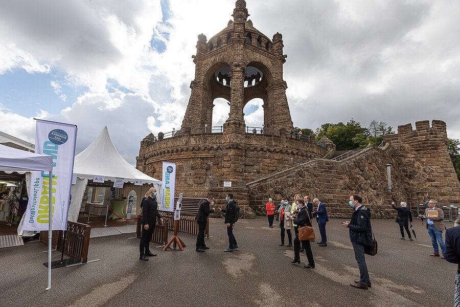 Die UrbanLand Partie ist die jährliche Netzwerkveranstaltung der REGIONALE 2022, organisiert von der OstWestfalenLippe GmbH. OWL GmbH-Geschäftsführer Herbert Weber freute sich über den wiederum großen Zuspruch: „Die REGIONALE bringt die Region in Bewegung, die UrbanLand-Idee wird in den Städten und Gemeinden, Vereinen und Organisationen engagiert angepackt. Das hat die Veranstaltung heute gezeigt. Das Kaiser-Wilhelm-Denkmal ist ein großartiger Ort für unsere UrbanLand Partie gewesen.“