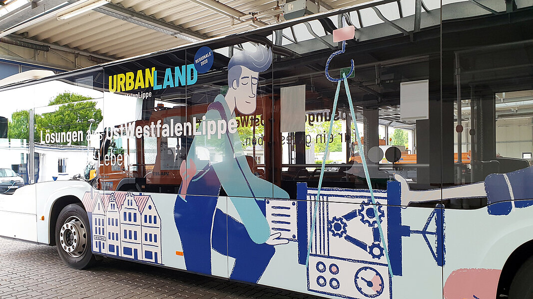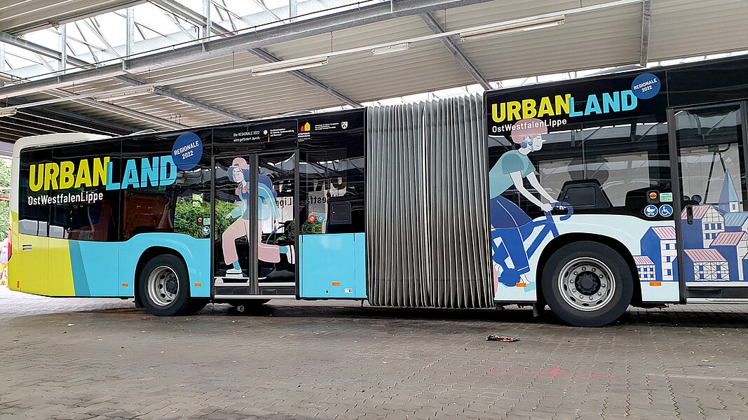 Mit einem ganz besonderen Bus sind die Mindenerinnen und Mindener jetzt unterwegs, denn durch das Stadtgebiet fährt der auffällig beklebte „UrbanLand OWL-Bus“. Der Gelenkbus, der für die Teutoburger Waldverkehr GmbH (TWV) im Einsatz ist, repräsentiert die Themen der REGIONALE 2022 im Präsentationsjahr: sichere und einfache Erreichbarkeit mit vernetzter Mobilität, Innovationsimpulse für exzellente Bildung und berufliche Entfaltung, lebendige Quartiere und Kommunen, starke Lebensräume zwischen Stadt und Land, sichere Daseinsvorsorge und Gesundheitsversorgung und insgesamt eine attraktive erlebbare Region.