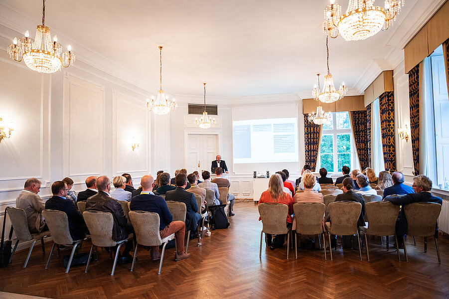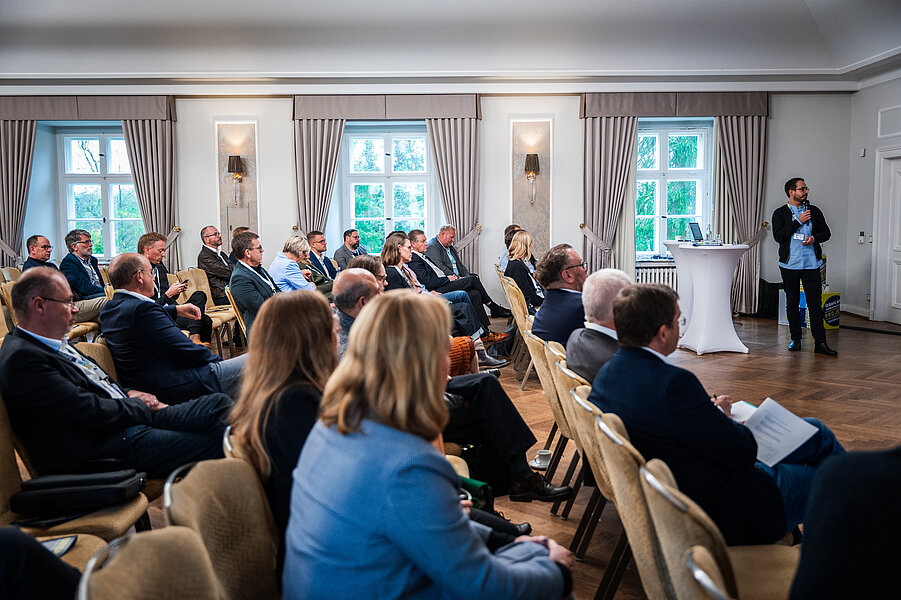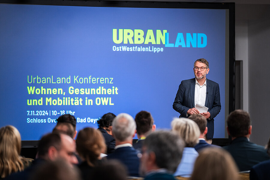 Wie gelingt der Generationenwechsel im Wohnen? Wie kann die medizinische Versorgung in ländlichen Gebieten gesichert werden? Und wie lassen sich Stadt- und Ortskerne über Mobilitätsangebote besser miteinander verbinden? Diese und andere Zukunftsfragen für Kommunen standen im Fokus der diesjährigen UrbanLand-Konferenz, die am 7. November auf Schloss Ovelgönne in Bad Oeynhausen stattfand. Mehr als 120 Fachleute aus den Bereichen Stadtplanung, Mobilität und Gesundheitsversorgung sowie Vertretende von Kommunen und Kreisen waren der Einladung der OstWestfalenLippe GmbH gefolgt, um neue Perspektiven und praxistaugliche Lösungen für Ostwestfalen-Lippe zu diskutieren. Die Konferenz ist Teil des Transferprogramms UrbanLand, das Projekte zur nachhaltigen Stadt- und Raumentwicklung aus der REGIONALE 2022 weiterführt.
