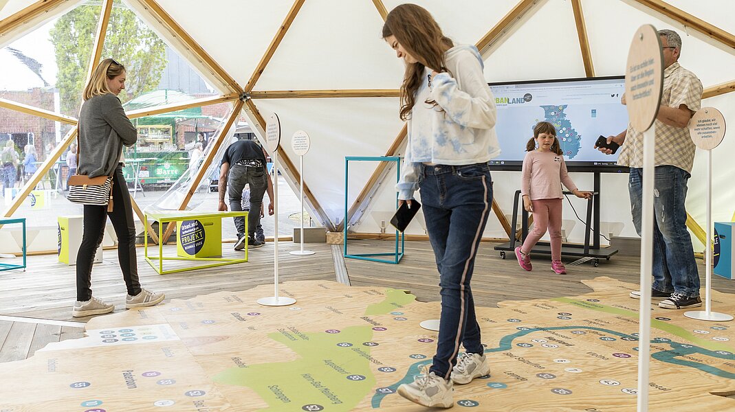 Der Findeisen-Platz verwandelte sich in einen gemütlichen Biergarten mit Bühne sowie Speisen- und Getränkeangebot. Hier war die UrbanLand-Welt als große Aktions- und Informationsfläche zu Gast. Neben der offiziellen Eröffnung sorgten an beiden Tagen Musik, Walk-Acts, Straßentheater sowie ein Ökumenischer Gottesdienst für ein abwechslungsreiches Programm.