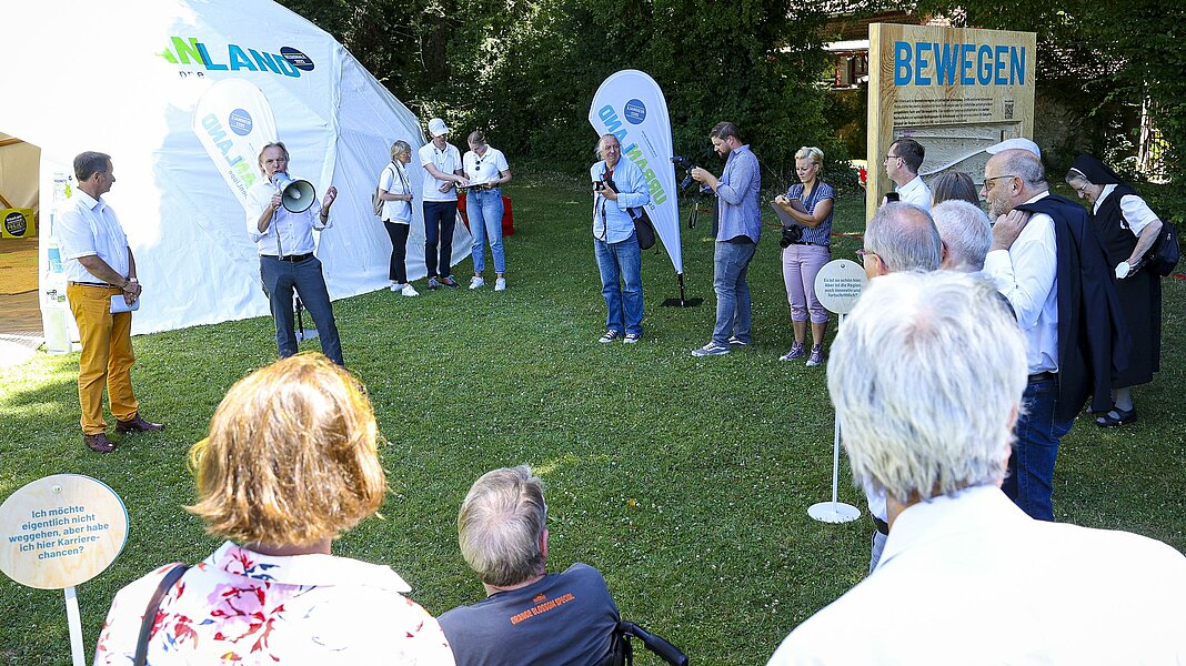 Ein Sommerfest für alle Generationen fand vor den Toren der Warburger Altstadt direkt an der Diemel statt. Hier war die UrbanLand-Welt am Samstag und am Sonntag zu Gast. Das Fest bot ein attraktives und abwechslungsreiches Bühnenprogramm. Viele Warburger Vereine organisierten unterschiedlichste Mitmachangebote und auch kulinarisch wurden die Besucherinnen und Besucher bestens versorgt. Zu den REGIONALE-Projekten zählt das neue Stadtquartier „Laurentiushöhe – das Quartier mit Seele". Zusammen mit dem Caritas Wohn- und Werkstätten (CWW) im Erzbistum Paderborn und der OWL GmbH wurde auf dem Gelände das Leuchtturmprojekt vorgestellt. Außerdem präsentierte der Kreis Höxter vielfältige Aktivitäten sowie die TH OWL das REGIONALE-Projekt "Smart Farm OWL".
